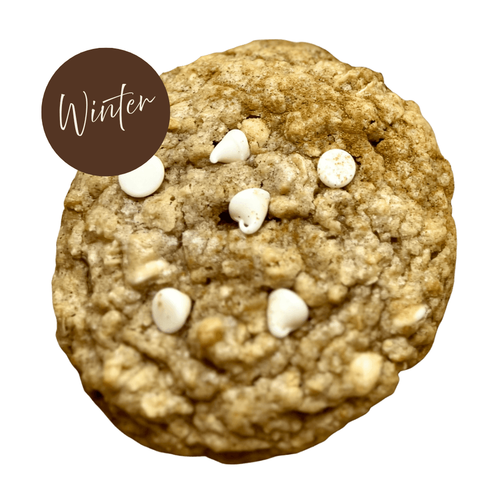 A cozy blend of warm cinnamon, hearty oats, and sweet white chocolate chips—soft, chewy, and full of comforting flavor in every bite.