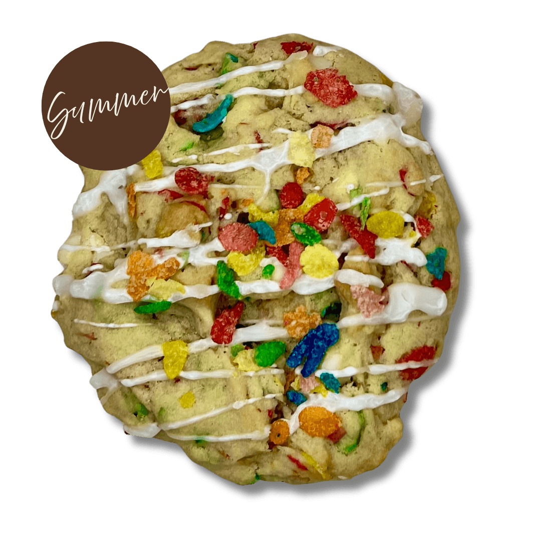 A vibrant, chewy cookie packed with crispy, fruit-flavored cereal for a delightful crunch in every bite. Sweet, colorful, and bursting with nostalgic charm, it’s a treat as fun as it is delicious!