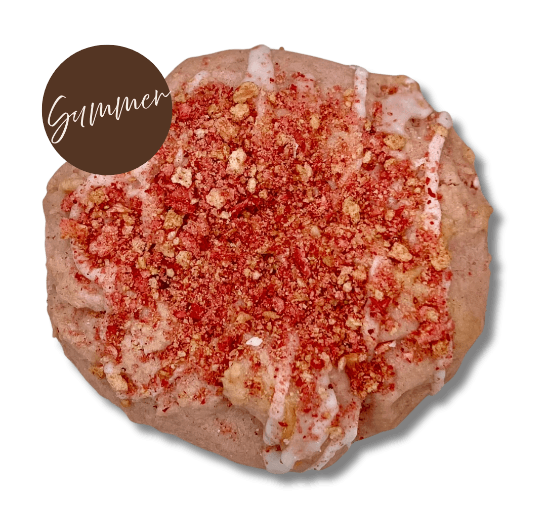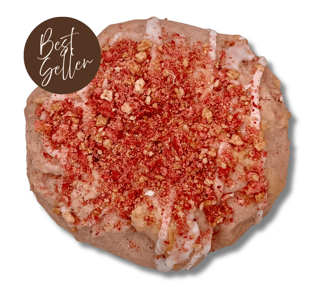 A soft, chewy cookie bursting with real strawberry flavor, perfectly balanced with a hint of vanilla and a touch of sweetness. Each bite is a delightful mix of fruity freshness and melt-in-your-mouth goodness.
