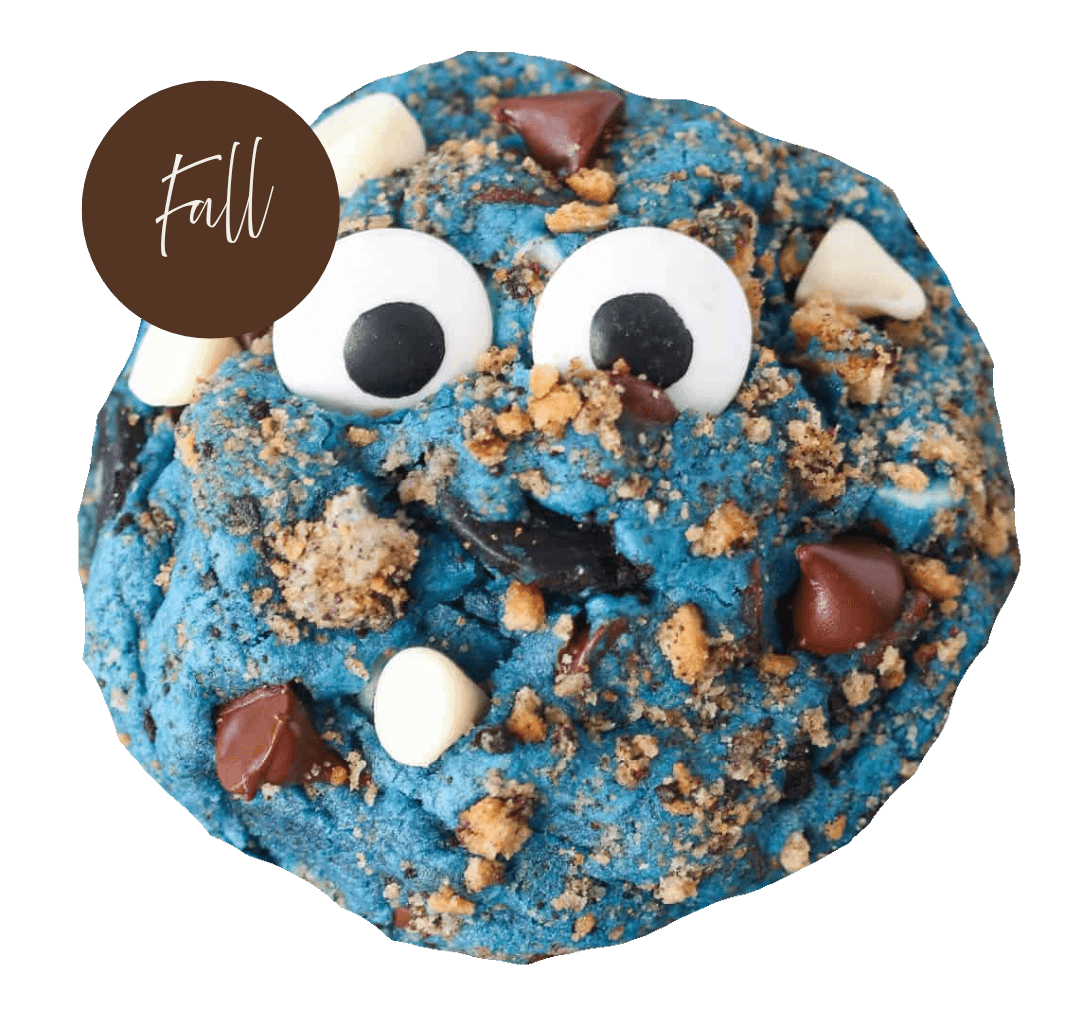 A wildly fun twist on the classic chocolate chip! This chewy cookie is packed with crushed Oreos, Famous Amos cookie pieces, and gooey mini marshmallows for the ultimate cookie mash-up. Finished with our signature blue “monster” hue and big googly eyes, it’s as playful as it is delicious!