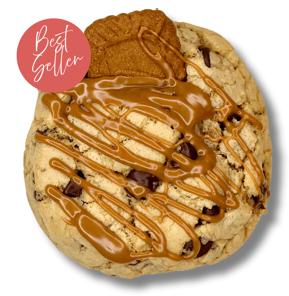 A rich, chewy chocolate chip cookie taken to the next level with cookie butter melted right into the dough. Topped with a crunchy cookie and finished with a luscious cookie butter drizzle, every bite is a chocolatey dream come true!